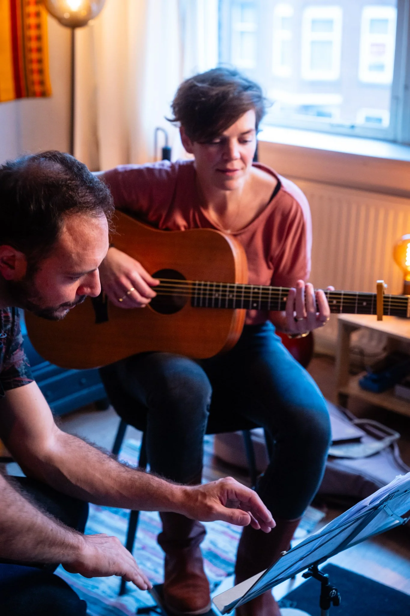 At the beginning of our music lessons, I always go back to the basics with you. What is your guitar posture ? How do you handle tone, timing and rhythmic feeling ? What have you taught yourself and do you do in your own way ? Where are the issues you feel in your progress in your guitar playing ? We make a plan and start working with guitar techniques such as fingerpicking and plectrum techniques, strumming, grooves, interpretation and improvisation. You and I play guitar in our lesson and we combine experiential learning with theory and knowledge of music.